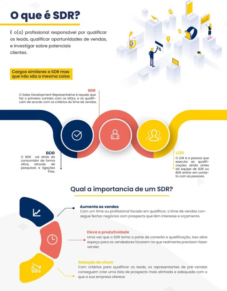 SDR é a sigla para Sales Development Representative, que pode ser traduzido como Representante de Desenvolvimento de Vendas ou, de forma mais comum no Brasil, pré-vendedor